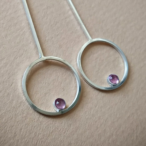 - Alambre de 1 x 1 mm. - Largo 6 cm. aprox. - Diámetro del círculo 2 cm. - Piedra Turmalina de 3 mm.