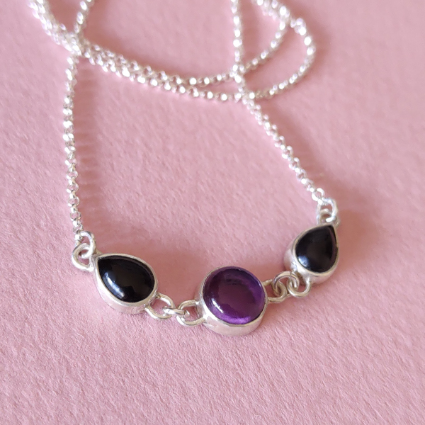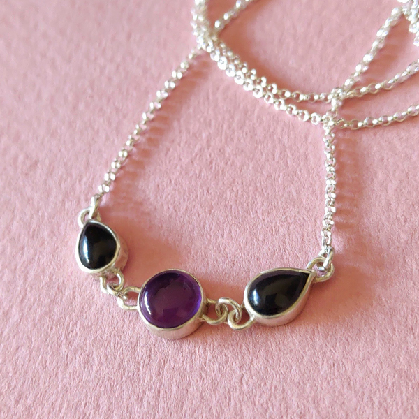 · Piedras gota ónix negro 5x7 mm. y amatista 7 mm.