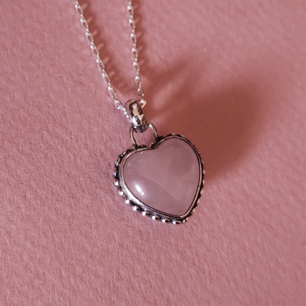 Collar con piedra cuarzo rosa en forma de corazón