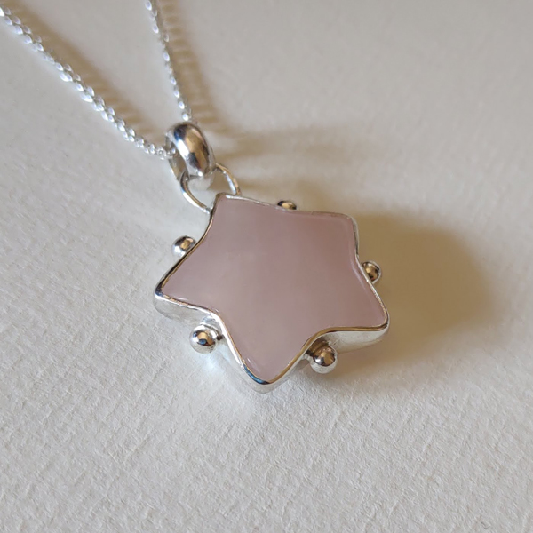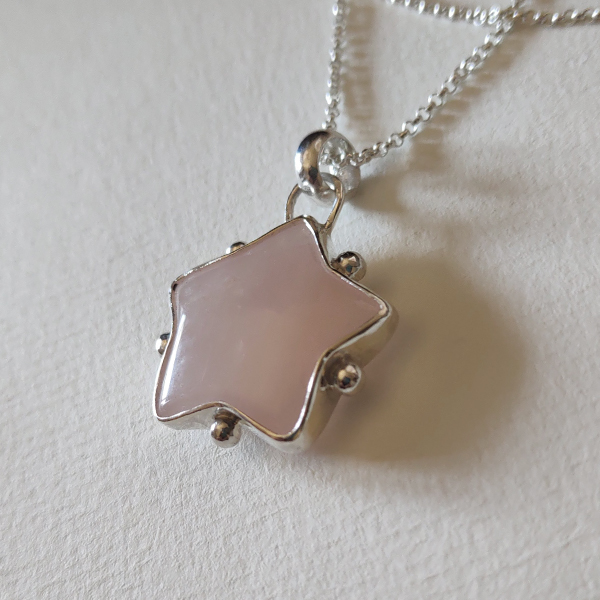 Collar con piedra cuarzo rosa en forma de estrella