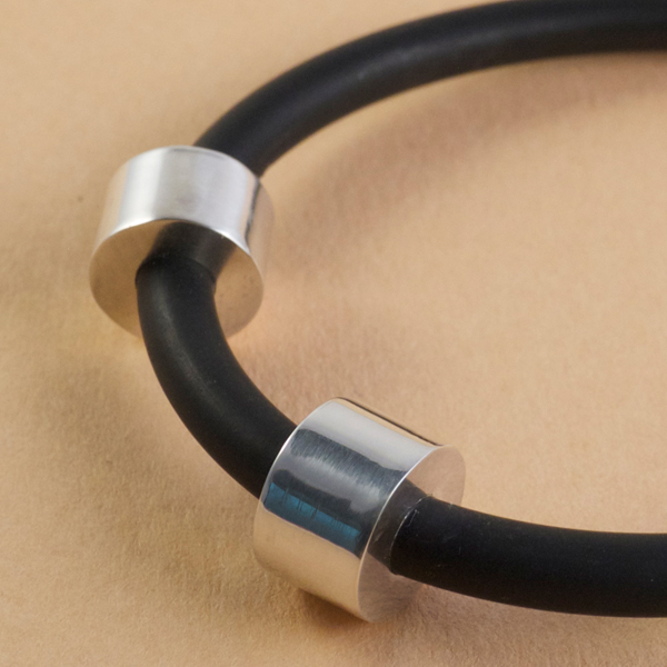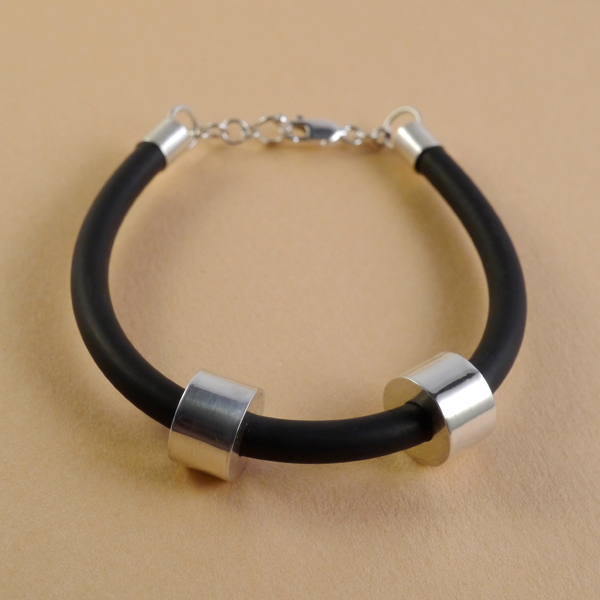 Pulsera de caucho con detalles de plata.