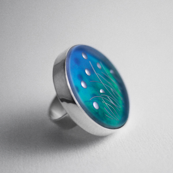Anillo con base y argolla de plata interior resina con detalles de plata