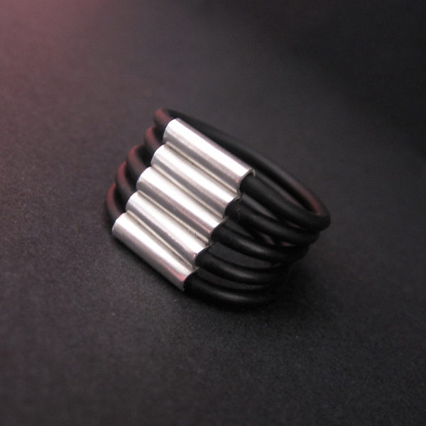 Anillo de caucho y plata