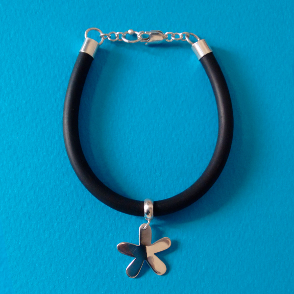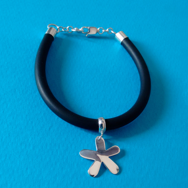 Pulsera creada en caucho con detalles de plata 950