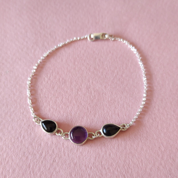 · Piedras gota ónix negro 5x7 mm. y amatista 7 mm.