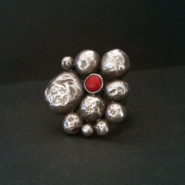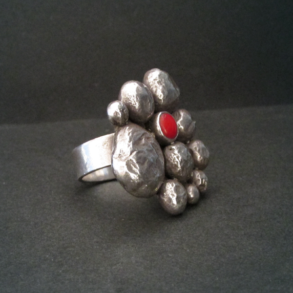 Anillo de plata creado con técnica refundido y envejecido, semi bolas macizas, el costo cambia dependiendo de la piedra que quieras.