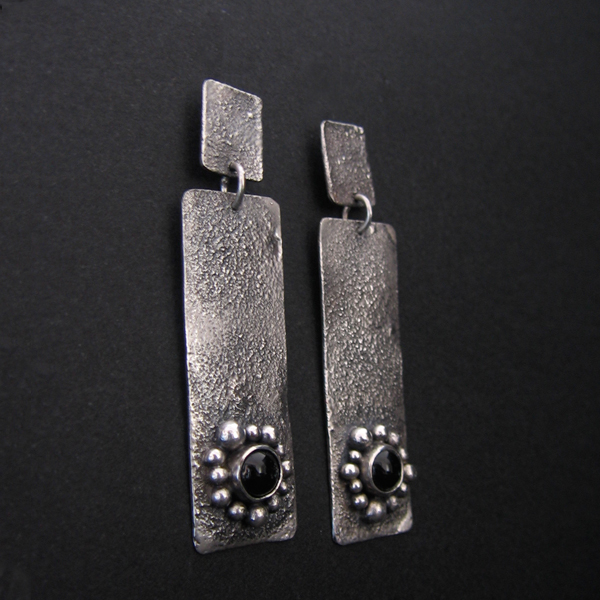 Aros de plata creados con técnica fuego controlado, puede ser con gancho o tuerca.
